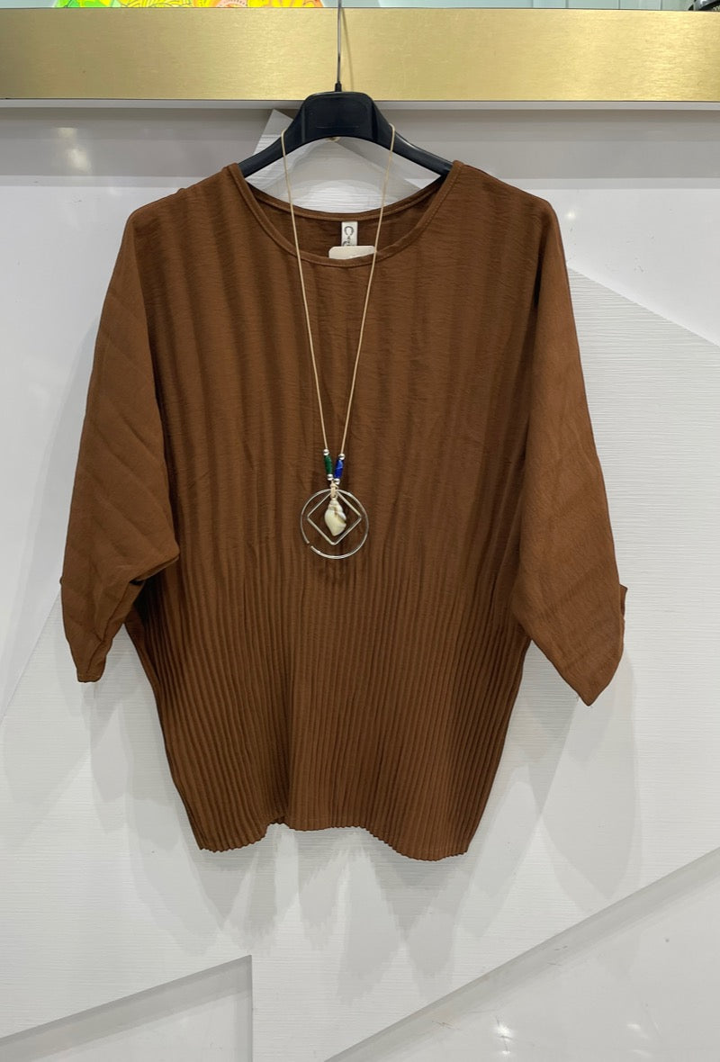 A beautiful 3/4 batwing sleeve style top in a gorgeous pleated heavier weight chiffon with necklace